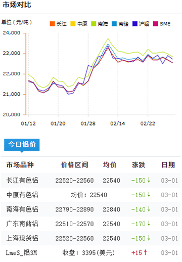 鋁錠價(jià)格今日鋁價(jià)2022-03-01